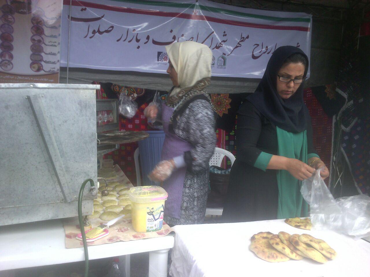 یکی دیگر از غرفه ها که فاقد قیمت و توسط بانوانی اداره و نسبت به پخت و فروش نان می پردازند،آرم معاونت اشتغال و خود کفایی کمیته امداد استان گیلان در داخل آن مشاهده می شود .