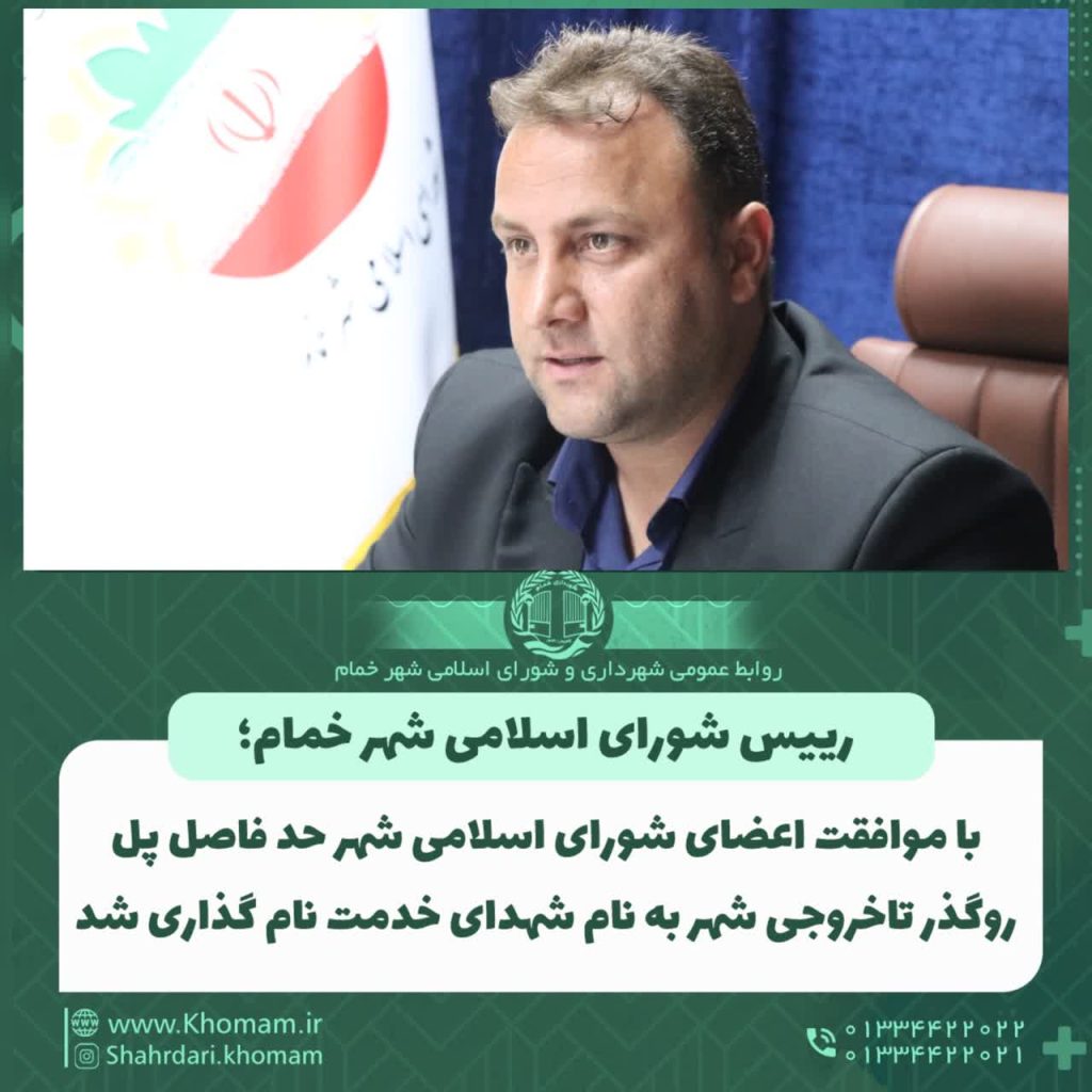 با موافقت اعضای شورای اسلامی شهر خمام حد فاصل پل روگذر تا خروجی شهر به نام «شهدای خدمت» نام گذاری شد