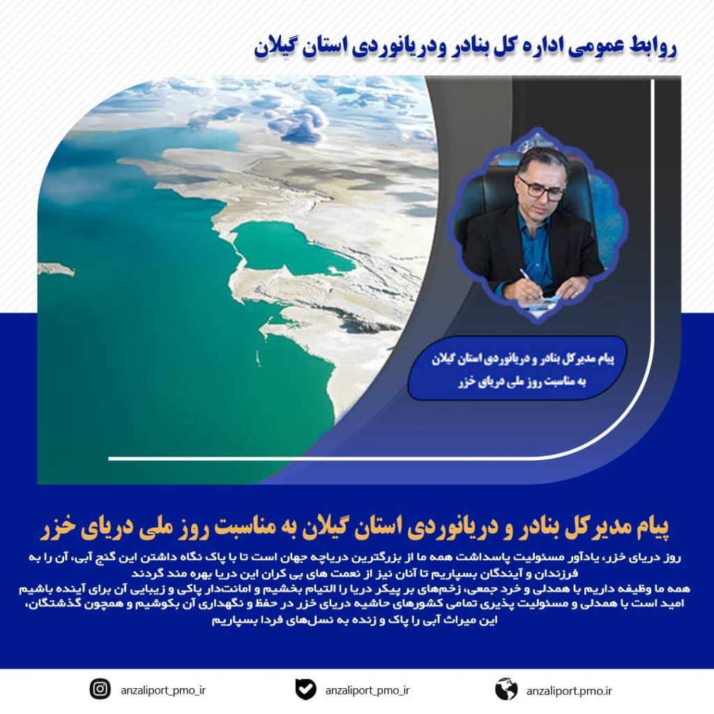 کاشف اسرار – مدیر کل بنادر و دریانوردی استان گیلان، با صدور پیامی فرارسیدن روز ملی دریای خزر را تبریک گفت و در بخشی از آن نوشت : همه ما وظیفه داریم با همدلی و خرد جمعی، زخمهای بر پیکر دریا را التیام بخشیم و امانتدار پاکی و زیبایی آن برای آینده باشیم